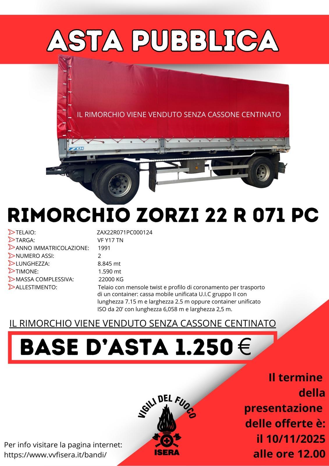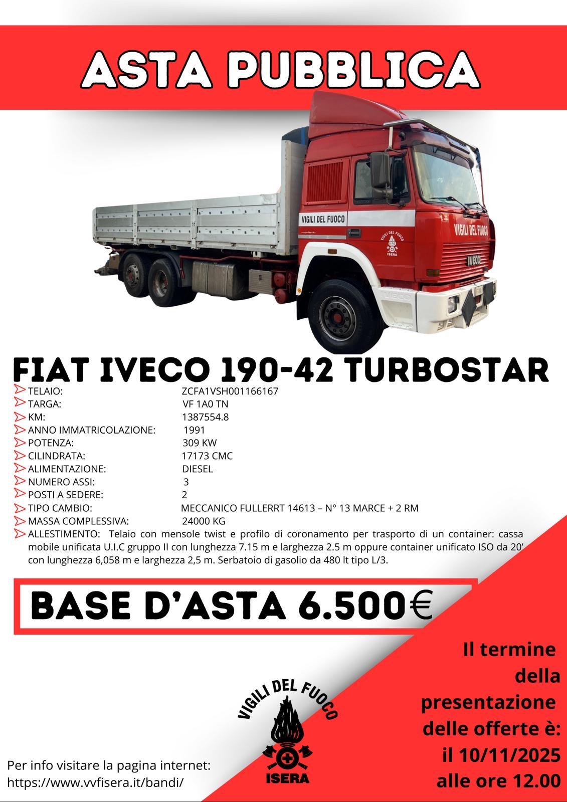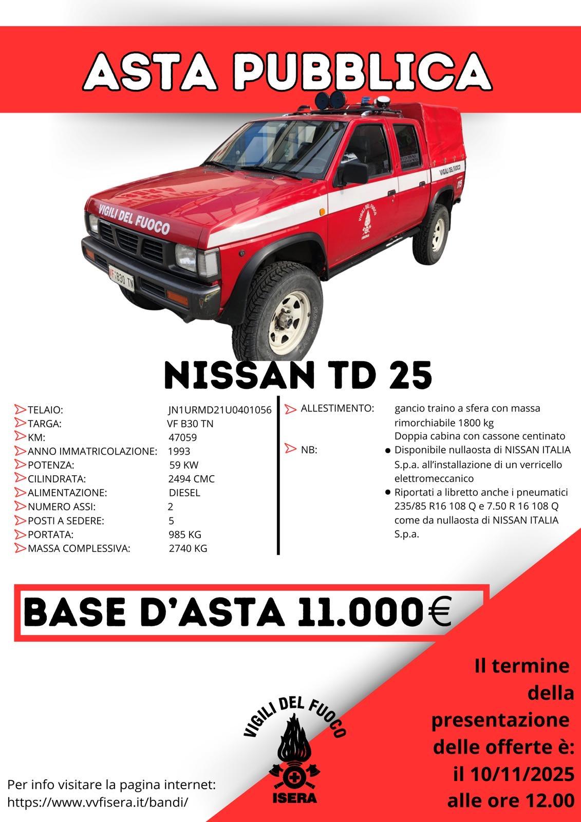 Il Corpo dei Vigili del Fuoco Volontari di Isera mette all'asta i seguenti mezzi: